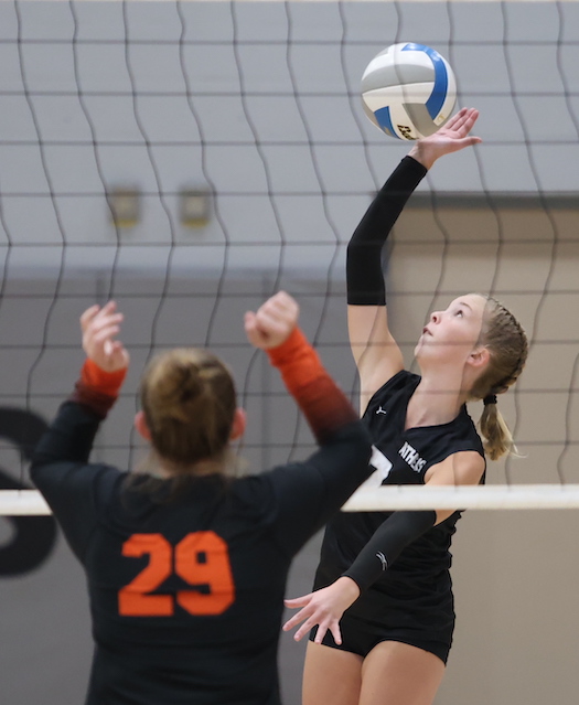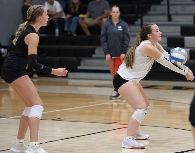 "Our setters Meg Wiles and Hannah Parrish) are running their butts off," said Darrow. "And, Ellie Mosher played incredible tonight, swinging away and playing all around. I'm very proud of her and the role she has taken on being just a sophomore."