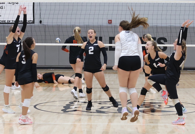 Sophomore Lainey Vosburgh recorded 21 digs and 45 serve-receives for the Wildcats, while junior Gretchan Hiley had eight kills and three blocks, and junior Hannah Parrish dished out seven assists.