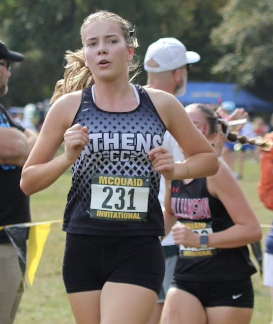 Race #2 (Small / Medium Schools)Evelyn Owen led Athens with a 25th-place finish in a time of 11:03.3 on the 1.6-mile course in a field of 215 runners.