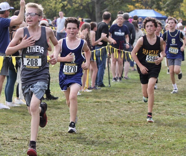 Race #2 (Small / Medium Schools)Athens' Rowan Morales placed 11th in a field of 278 runners on the 1.6-mile course with a time of 9:15.4, while Nico Rossettie was 39th in 9:55.9, and Landon Liddiard was 125th in 11:26.0.
