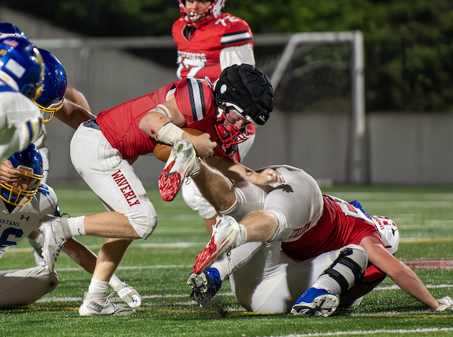 The Waverly ground game, which got stronger as the game progressed, accounted for a pair of first-downs, including a 2-yard run by Ben Shaw on fourth-and-1 at the Maine-Endwell 21.