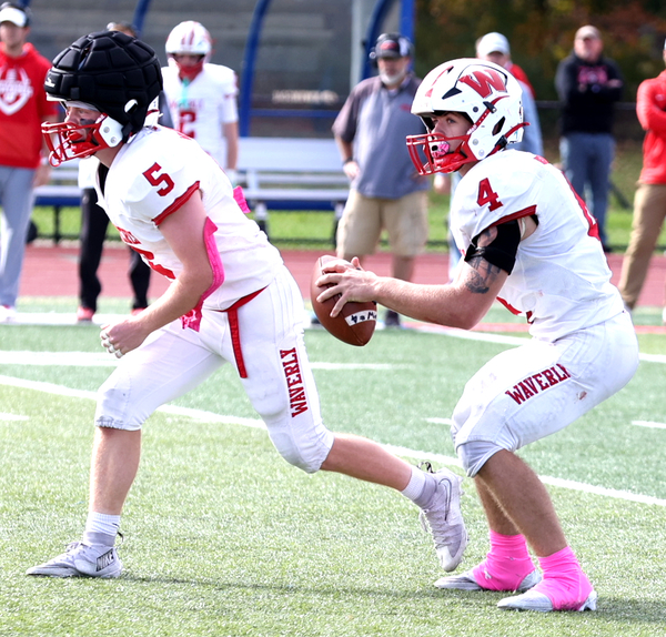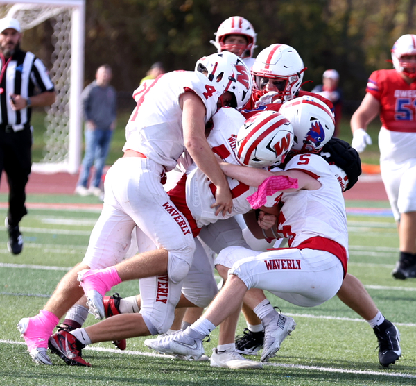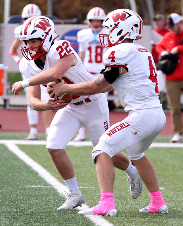 Waverly coughed the ball up on the exchange on the very next play and the River Hawks’ Atlas Boland recovered the ball at the 8, but Owego was unable to capitalize on the miscue.