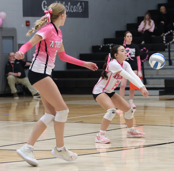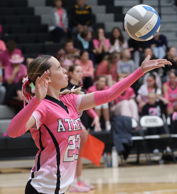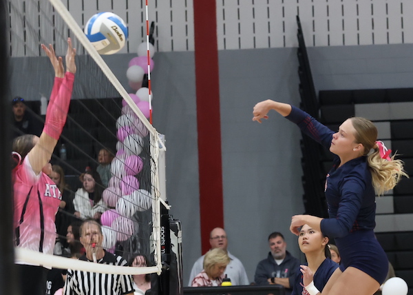 After back-to-back side-out gave Athens the serve back with a 19-18 lead, junior Hannah Parrish served up six straight points, with sophomore Ellie Mosher registering a pair of kills in the run.
