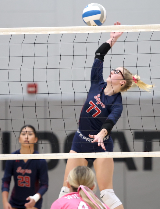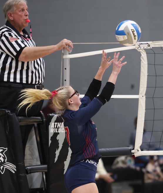 Galasso had a big service spree early in the game to put Athens up 11-7, but Sayre junior Azalea McClenny registered a kill to stop the run.