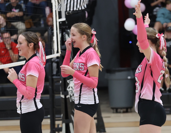 The Wildcats rallied from late deficits in each of the first two sets to win by scores of 25-18 and 26-24. They closed out their "Pink Out" match with a 25-16 win in the third set.