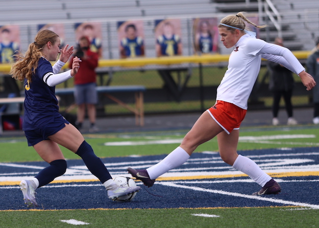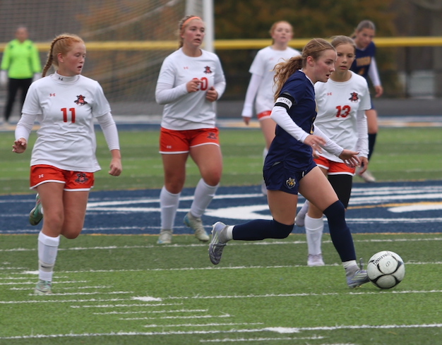 About 7 1/2 minutes later, Howey picked up a loose ball in the Marathon end, and raced 75 yards with the ball at her feet, beating four or five Marathon defenders before punching a shot past the Olympian keeper to make it 3-0.