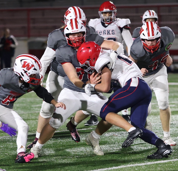 After Waverly jumped offsides on the extra-point attempt, Forks decided to go for two, but senior Troy Beeman led the Wolverine interior line in stuffing the conversion.
