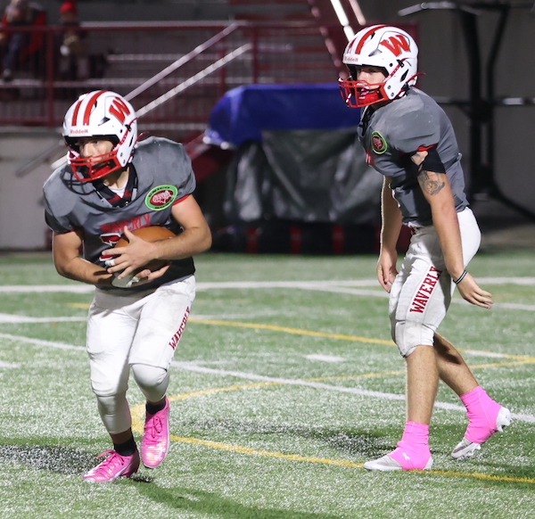 Ben Shaw completed 9 of 11 passes for 77 yards, one TD, and one interception, with Davis leading Waverly with four catches for 16 yards, and Hogan Shaw added two grabs for 38 yards.