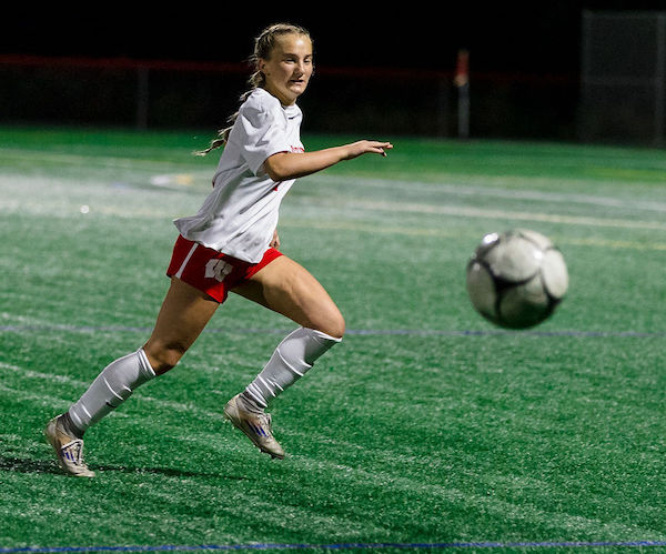With 12:47 remaining in the half, sophomore Lilly Boothby got a quick touch on the ball with her right foot to settle the ball at the top of the 18. She played it to her left, fired a shot over the keeper into the upper-90 in the left corner of the net to make it 2-0.