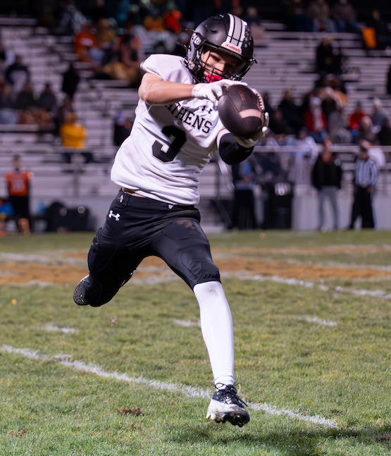 Marmor led Athens with six receptions for 125 yards and one TD, and Friend had four grabs for 64 yards and one TD.