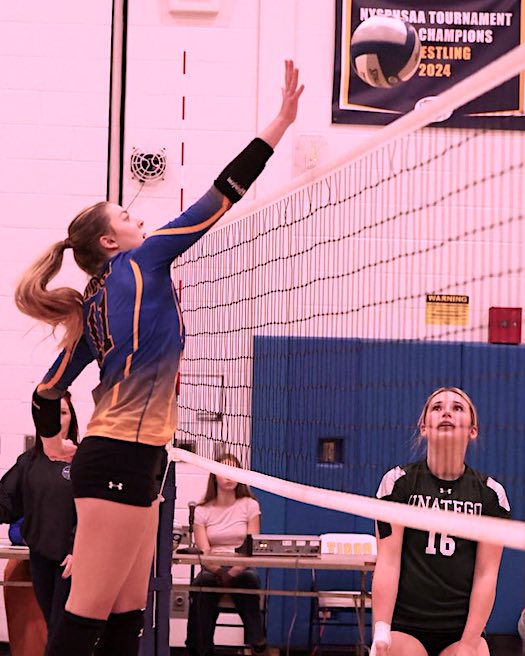 For Unatego, Hurlburt had seven points, including three aces, a kill, an assist and six digs; Hafele added four points with two aces, two kills, four assists and one block; Raelynn Parks and Gore contributed two kills and four blocks apiece; Chloe Stilson had four points and three kills; and Cassidy Barber added seven digs.