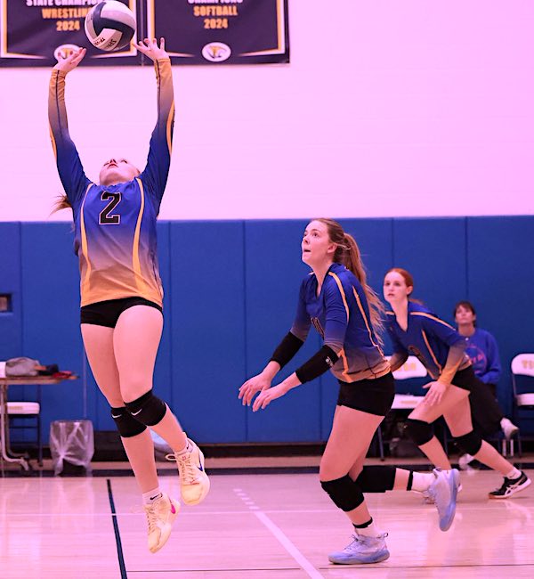 Chamberlain joined in on the team effort with five points, eight assists and five digs; Hall chipped in with five points, four kills, two blocks and two digs; Vanessa Tunnicliff had two kills, three assists and one dig; Sadie Marshall added four points and one dig; Lydiah Decker pitched in with eight digs; and Mary Divers tacked on one point and two digs.