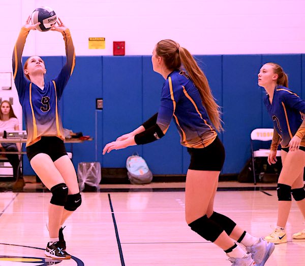 Mezzatesta would add an underhand tap which rolled up the the side of the net and over the top, then snuck a shot inside the left sideline as the Tigers stretched their lead to 19-5. Zorn picked up nine service points during the run.