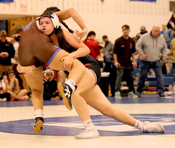 Holmes scored four falls in the pool play — the first three in 40, 38 and 26 seconds, but lost via fall in the first-place match to East Rochester standout Bailey Morrison.