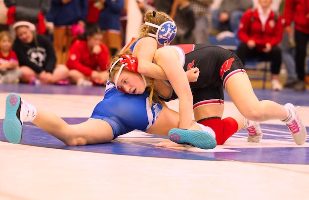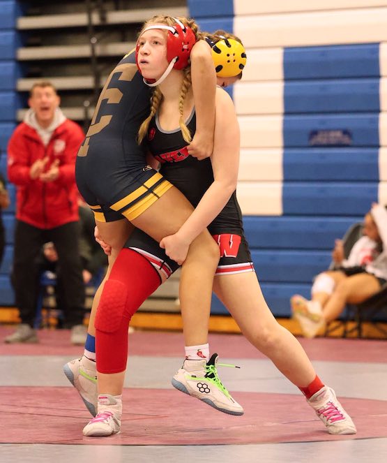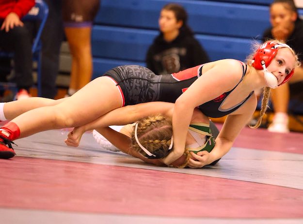 Wright was 3-0 in pool play — all via first period falls in her first three varsity matches, then pinned Horseheads' Lily Vesek in 2:27 in the semifinals.