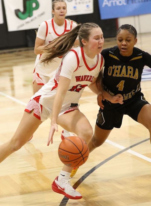 Juniors Ryleigh Judson and Makenzie Olmsted, who knocked down a 3-pointer, scored four points apiece, and the Waverly defense clamped down on O'Hara, and used a 1d-4 run to take a 34-26 elead into the final eight minutes.