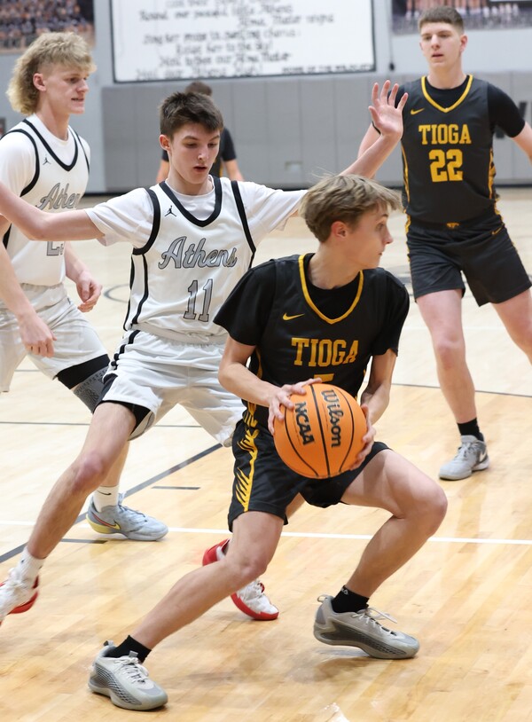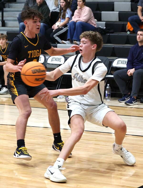 HS BOYS BASKETBALL: WELL-ROUNDED EFFORT LEADS ATHENS PAST TIOGA (December 29, 2025)