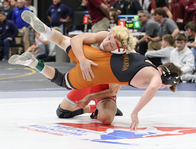 After dropping a 5-3 decision to top-seeded Jacob McVige of Honeoye Falls-Lima's Jacob McVige in the semifinals, Robinson scored a takedown in the final seconds to pull out a 6-4 win over Towanda's Reese Sluyter in the consolation semifinals.