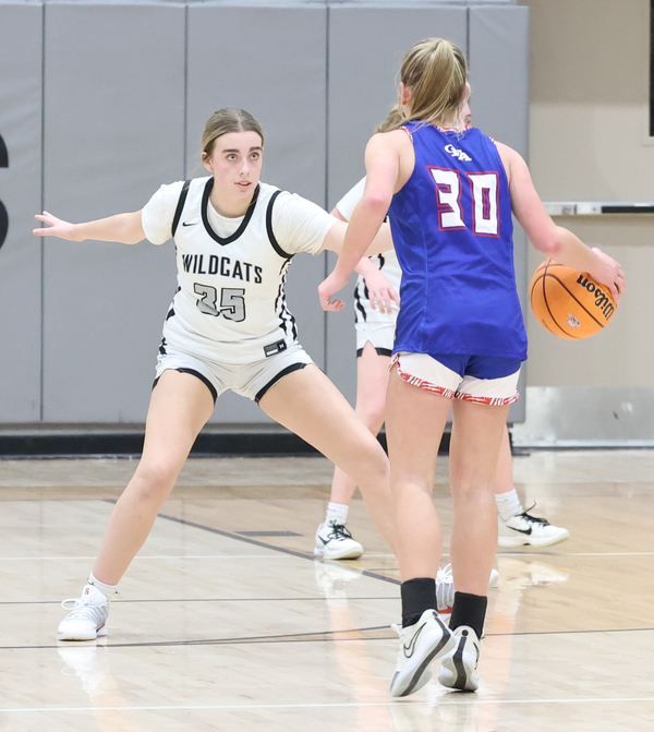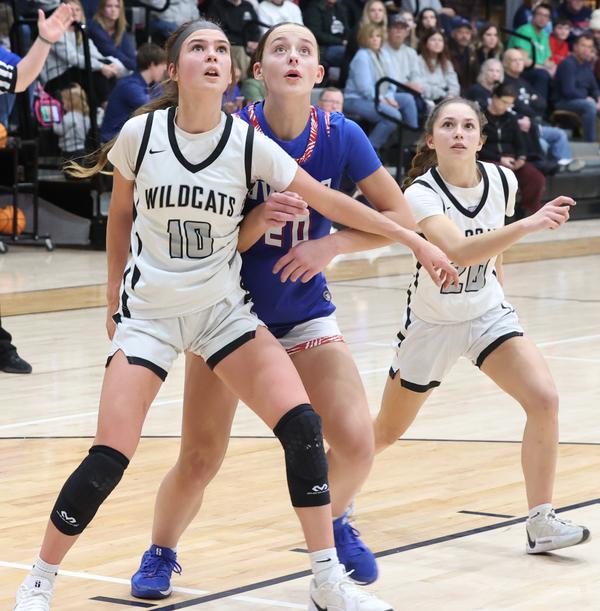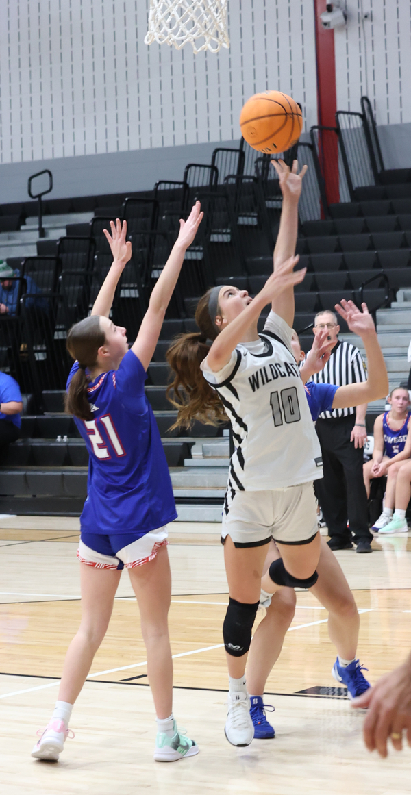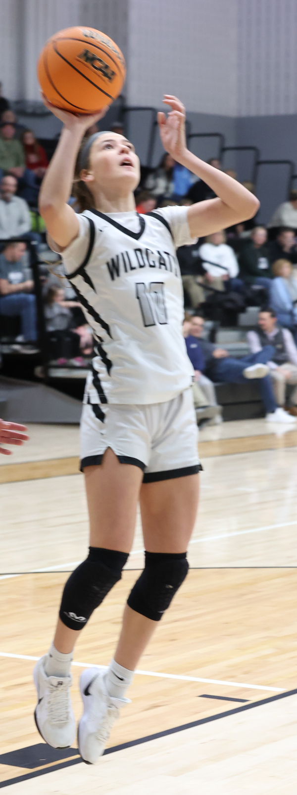 Alissa Vough, McKenna Jarvis and Allison Kemp combined to sink four free throws then Jarvis drained a pair of 3-pointers and a free throw to counter free throws by Eva Crawford and Searles and pull the Wildcats within a point at 13-12.