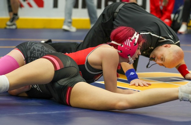 Vanderhoof, the third seed, was 2-1 in the 126-pound bracket. She opened her day with a 20-second pin of Hornell's Madisyn Kohls, then decked SVEC's Madalyn Jayne in 22 seconds in the round-of-16.