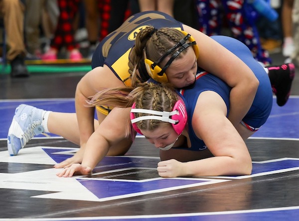 Senior Mia Hall was 3-2 in the 114-pound bracket. After losing her opening-round match, Hall rebounded with three straight falls, including back-to-back 28-second pins.