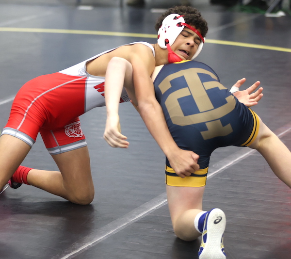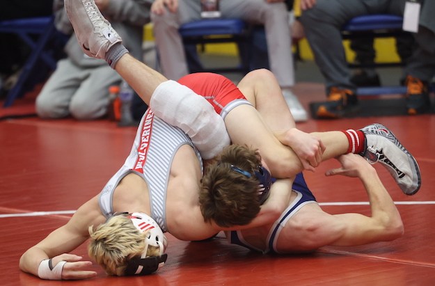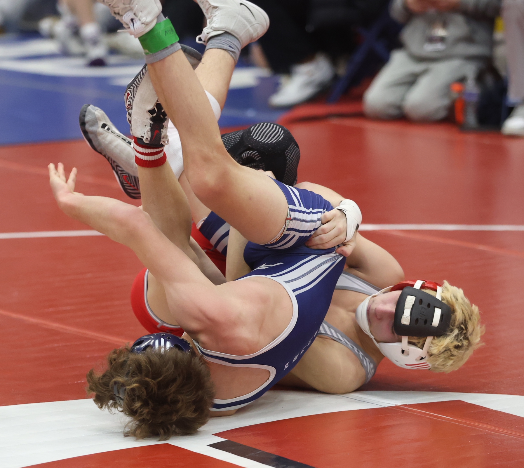 He scored a first-period takedown of second-seeded Frank Barrientos of Chambersburg, but Barrientos slapped on a headlock late in the first period for a fall at 1:40.