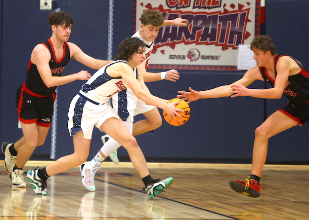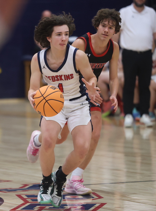 Sophomore Riley McGaughey had four points and two boards for the Redskins, while Declan Barry added four points and two assists, freshman Gabe Wheeler grabbed three rebounds, and junior Rommel Suba chipped in with two assists and two steals.
