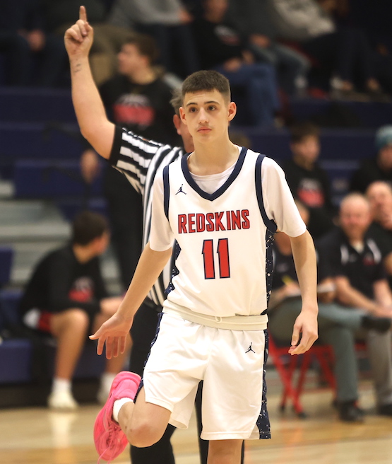 Seniors Carter Bleiler, who canned a 3-pointer, and Dom Mezzatesta scored four points apiece in the first quarter for the Redskins.