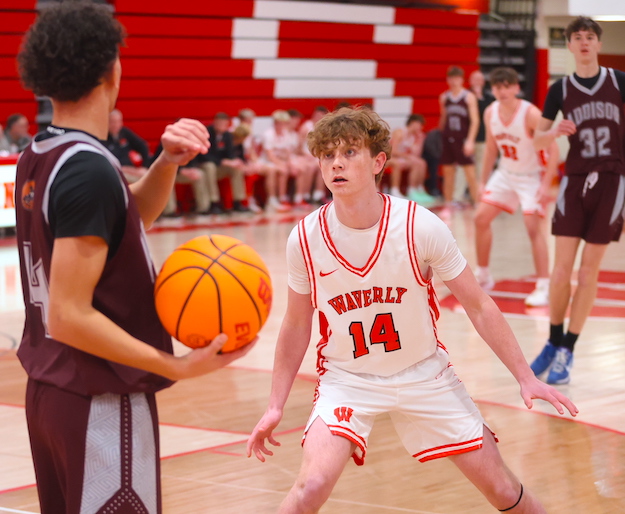 Freshman Braiden Judson took advantage of Waverly's press for a pair of lay-up in the opening minute of the game, and senior Hogan Shaw canned a pair of 3-pointers in the Wolverines' game-opening, 15-0, run.