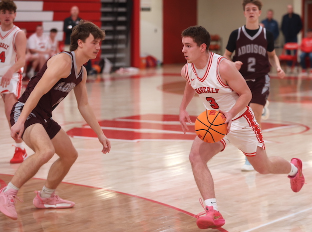 Tyler Miller scored with 4:55 remaining in the first quarter t put Addison on the board, but moments later sophomore Jack Pipherdrained a 3-pointer to give Waverly an 18-2 lead.