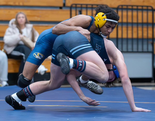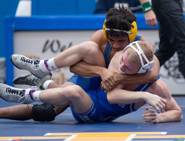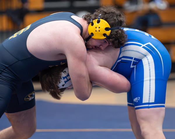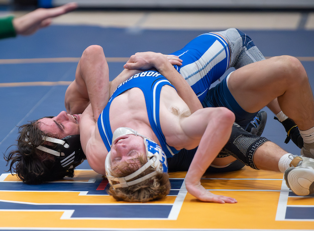 103: Drayke Ulrich (T) by fall over Nolan Miller (H), 3:14;