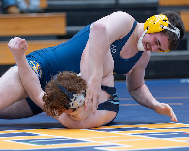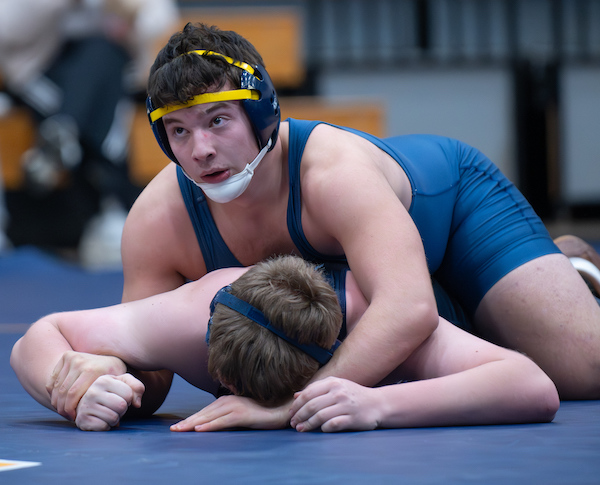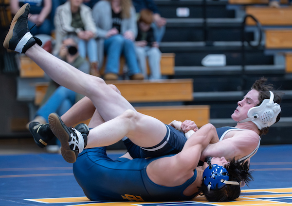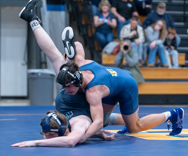 Junior Caden Bradley kept it rolling at 157 pounds (there was no match at 150) with a pin of Wyatt Campbell in 42 seconds to extend the lead to 33-10.