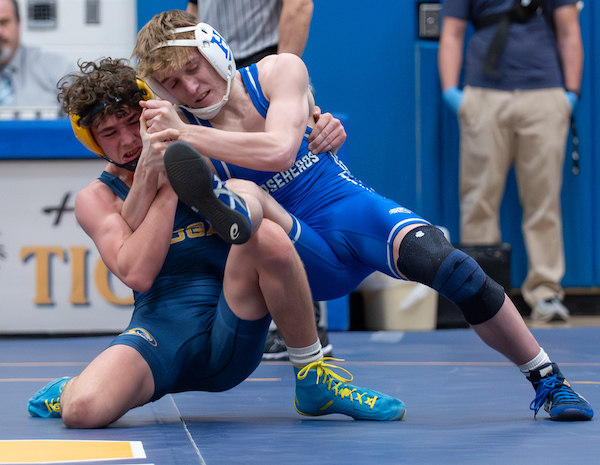 Sophomore Drayke Ulrich wrestled the longest bout in the match, pinning Dodge McPherson in 3:03 at 1:03 pounds to give the Tigers a 6-0 lead.