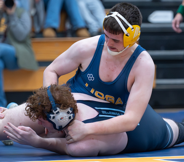 Senior Jayden Duncanson and junior Caden Bradley finished off Tioga's run with pins in 1:37 and 58 seconds, respectively, at 144 and 150 pounds to make it 46-0.