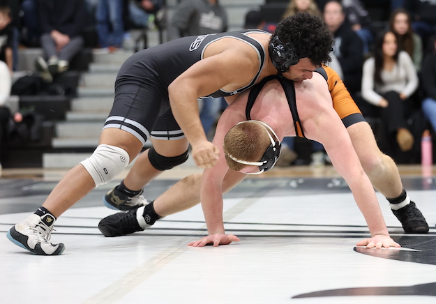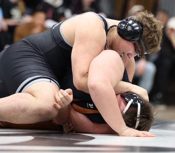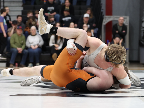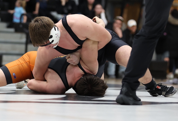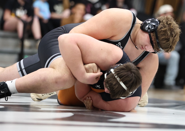 Senior Brenden Comstock put the finishing touches on the Wildcat victory with the quickest fall of the night, decking Dominik Miller in 45 seconds in their 285-pound match-up.