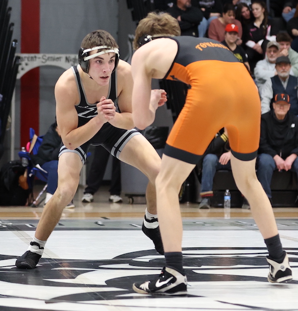 Forfeits to freshman Joshua Saxon at 114 and junior Zaine Campbell at 127 pounds, sandwiched around an Athens forfeit at 121 pounds gave the Wildcats an 18-6 lead, but Towanda answered with four pins in the next five weight classes to take a 30-22 lead.