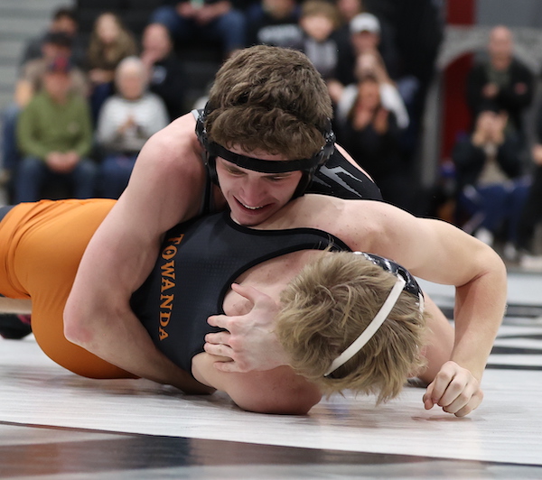 ATHENS 43, TOWANDA 30107: Chace VanDyke (A) by fall over Mason Harbst (T), 1:59;