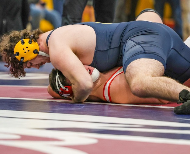 Corby, the third seed, reach the finals with a pair of technical fall wins, including a 15-0 win over second-seeded Simon Griggs of Moravia.
