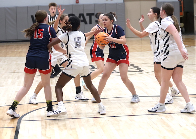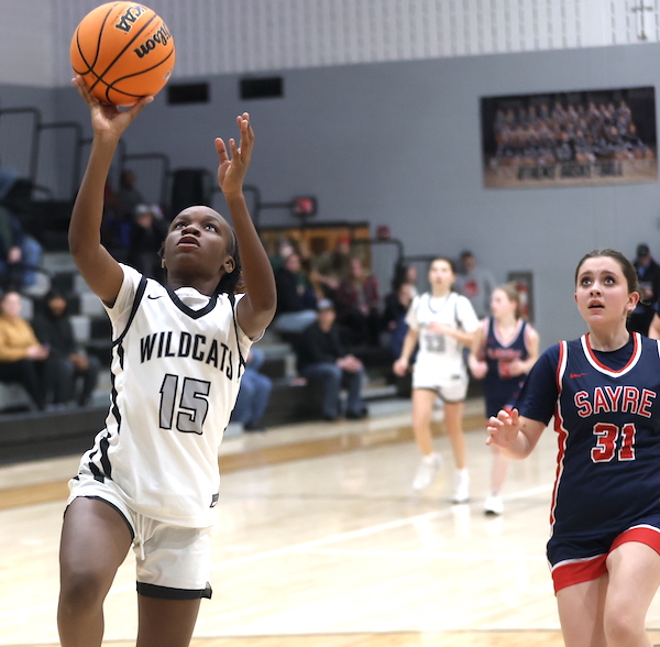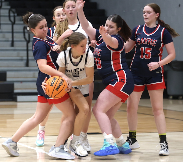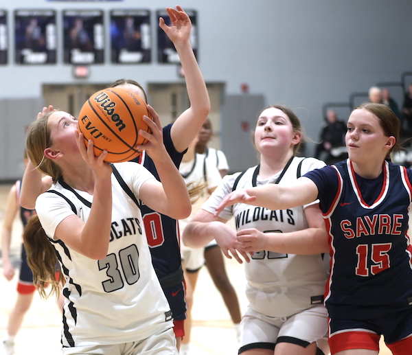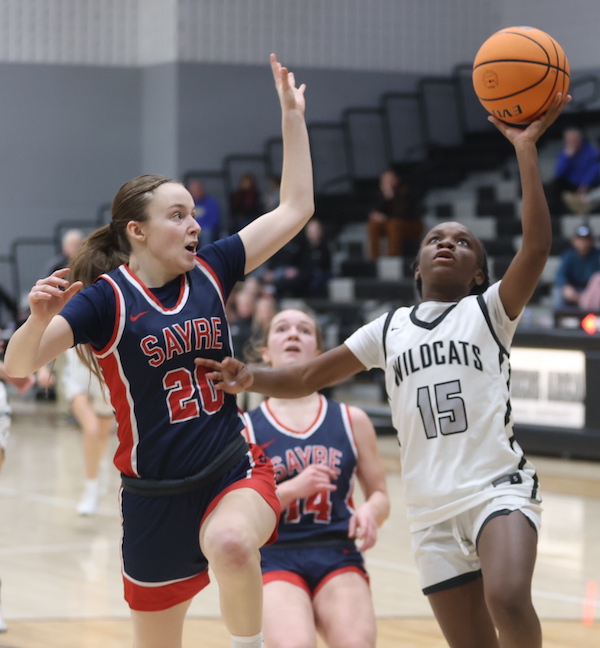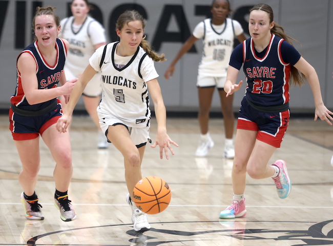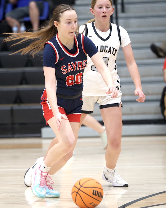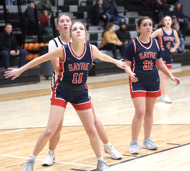 Afftyn VanDuzer had five points, including a 3-pointer, to lead Sayre, while Emily Strickland hauled down eight boards and blocked one shot, and McKenna Parrish added two rebounds and two blocked shots.
