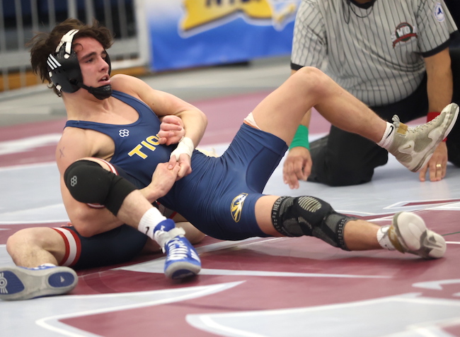 Seniors Logan Bellis (16-0 in 2:13) and (19-2 in 2:29) scored back-to-back technical falls at 126 and 132 pounds, respectively, then senior Brayden MacWhinnie decked Vincent Colantino in 2:41 at 138 pounds to pounds to put the Tigers up 39-6.