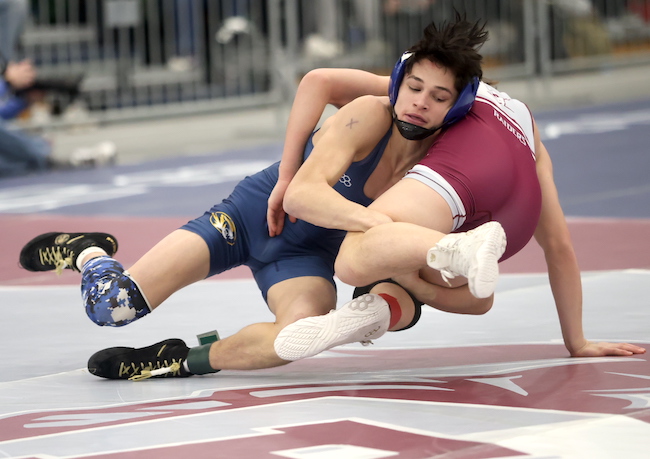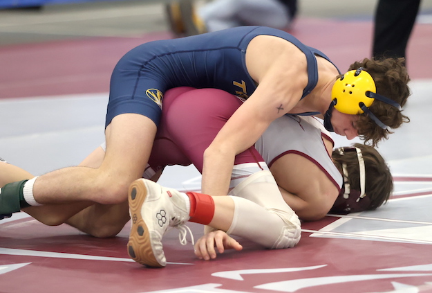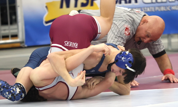 By TIM BIRNEYValley Sports ReportSYRACUSE — Top-seeded Miller Place won all the "toss-up" matches, and piled up bonus points, while avoiding the same in a convincing, 45-18, win over Tioga in pool play to advance to the semifinals of the New York State Division 2 wrestling duals here at the SRC Events Center on the campus of Onondaga Community College.
