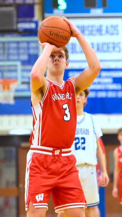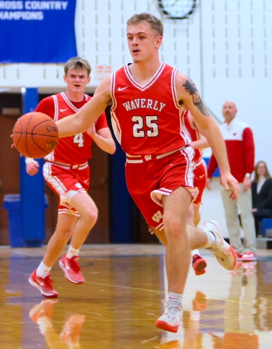 Senior Hogan Shaw canned four 3-pointers and had a rare four-point play for 13 points in the opening stanza, while sophomore Jack Pipher drained a trio of 3-pointers for nine points, and freshman Braiden Judson added five points, including a 3-pointer, in Waverly's game-opening 34-11 run.