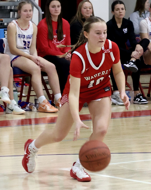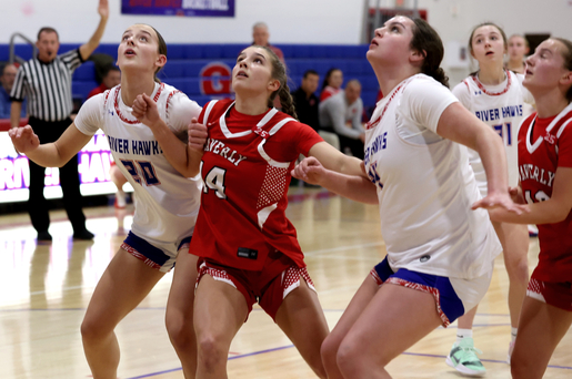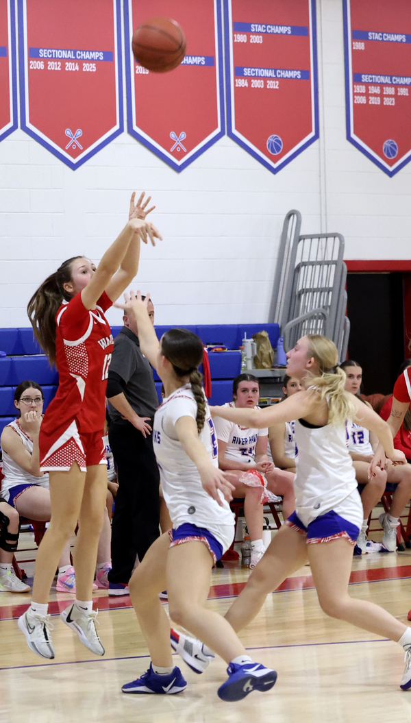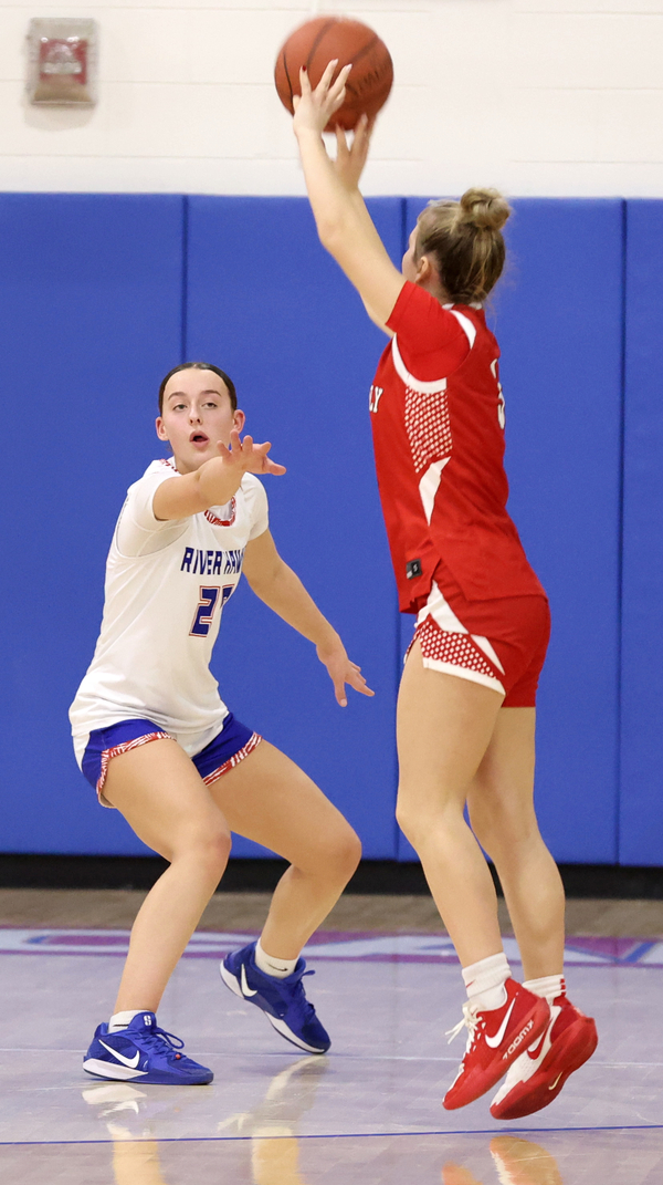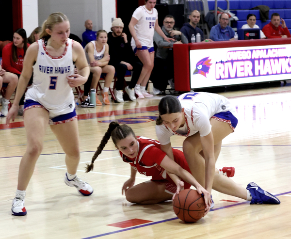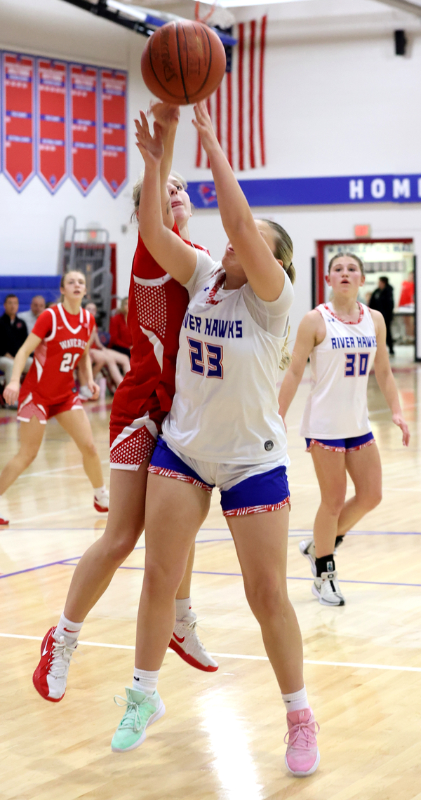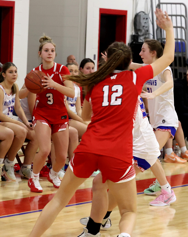 A basket from Keely Wicklund put the River Hawks on the board about 2 ½ minutes into the first quarter, then Searles wrapped a pair of buckets around a Twedt free throw for a 6-1 advantage.