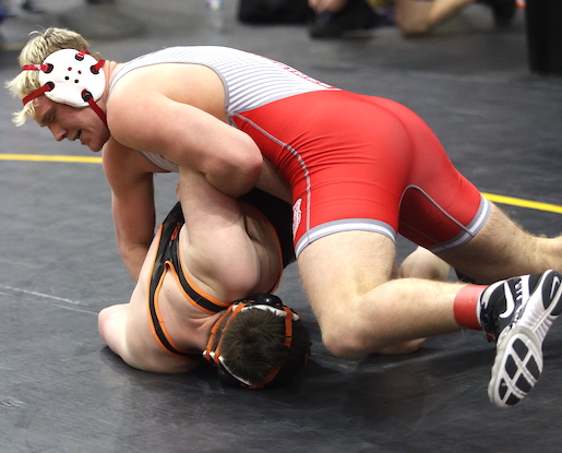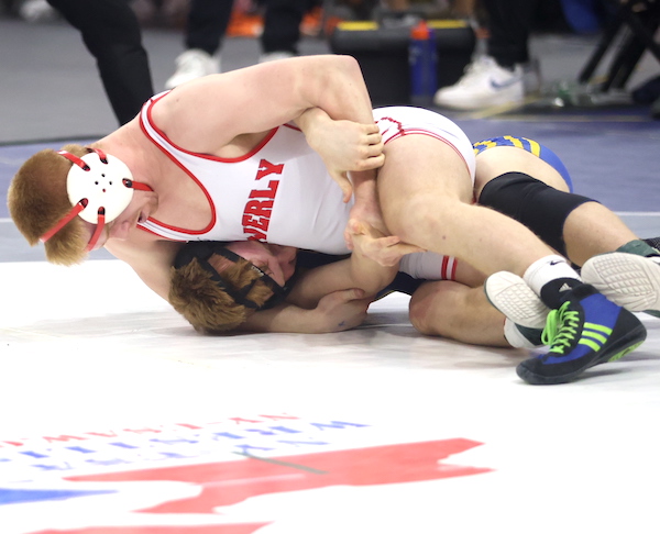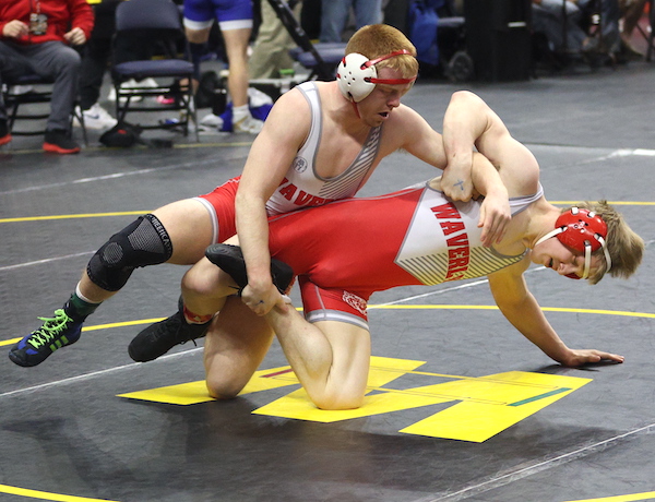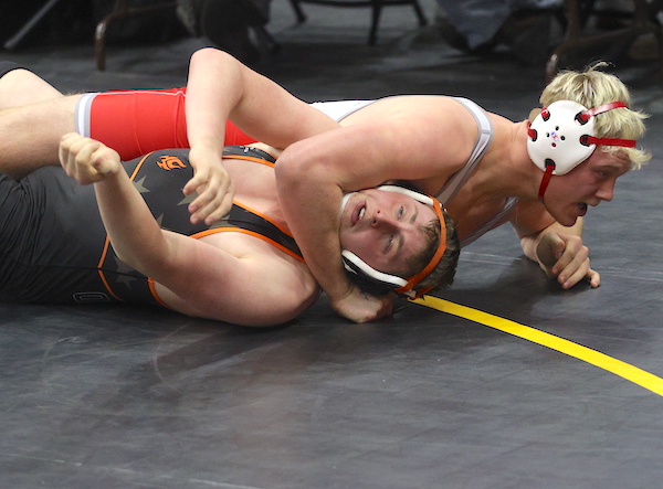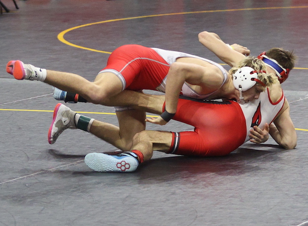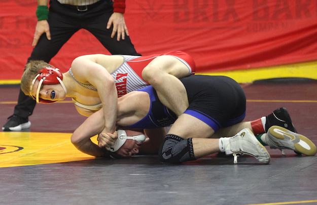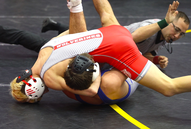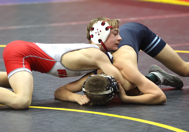 Welles pinned Marathon's Trenton Vinson in 1:24 — his longest match the day — in the quarterfinals, then pinned Marathon's Brian DeForest in 54 seconds in the semifinals.