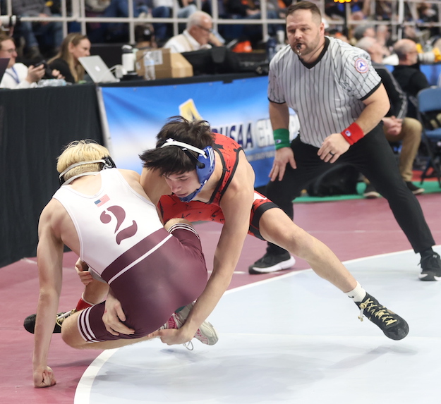 Ulrich, who is making his first appearance at States, is the seventh seed at 103 pounds and opened with a pin of Owego 7th-grader Gavin Lovell, the 10th seed, in 2:41.