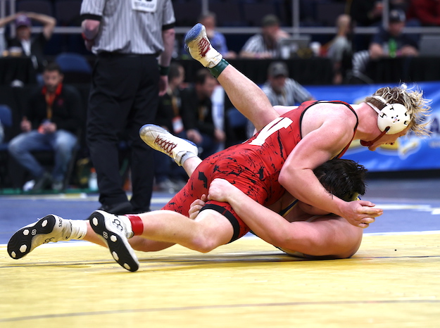 Robinson, a fifth-place finisher at States last year, used a takedown and two sets of four near-fall points on tilts to take an 11-0 lead just 34 seconds into the bout, then finished it off with two takedowns.