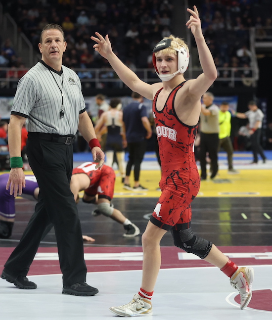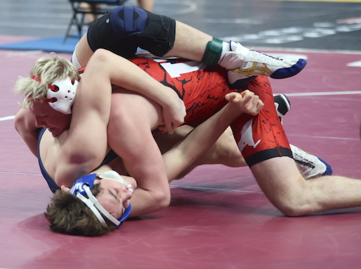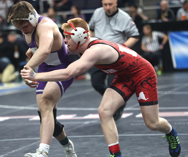 Stotler pinned Little Falls's Collin Logalbo in 2:40 in the blood round, then lost 8-1 to John Glenn's Aiden Lee to fall into the seventh-place match, which he lost via fall in 3:49 to Ichabod Crane's Peter Filli in a match that was deadlocked at 7-7 at the time of the fall.