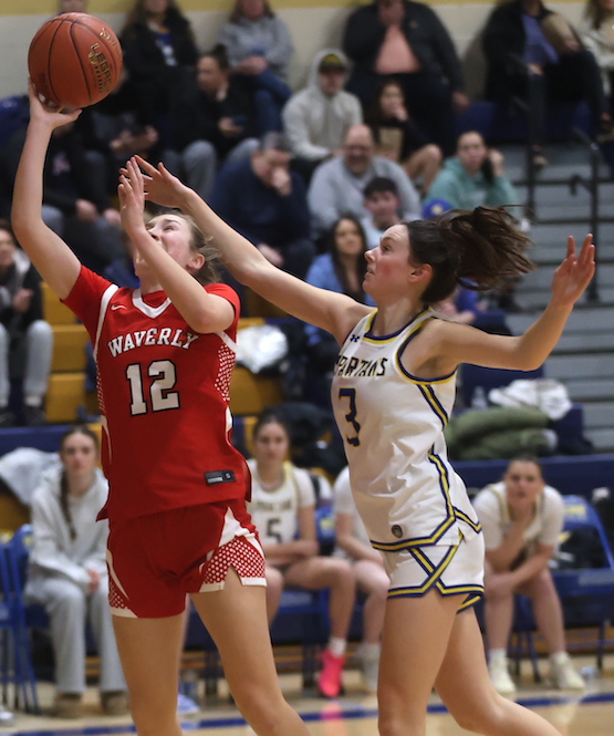 Senior Brilynn Belles knocked down a pair of 3-pointers and sophomore Lauryn Welles scored in the low-post for the Wolverines in an 8-1 spurt that closed the gape to 47-31 with 3:25 remaining in the third quarter, but that was the closest Waverly would get.