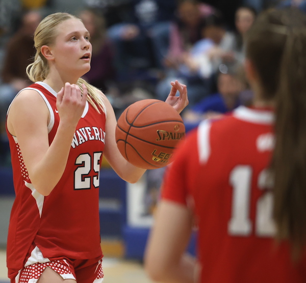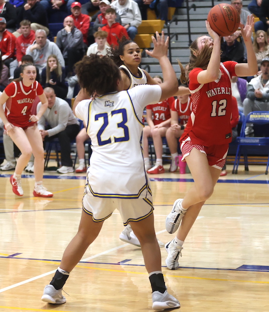 M-E scored the next two buckets to take a 9-5 lead, but Sutton drained back-to-back 3-pointers, and junior Ryleigh Judson scored in transition in an 8-3 spurt that put Waverly up 13-12 with 2:19 remaining in the first quarter.