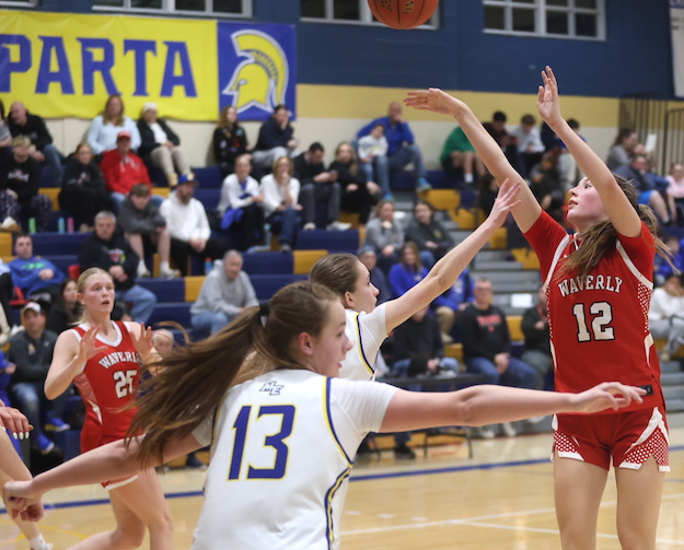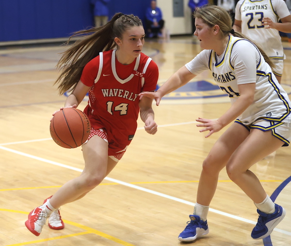 After the Spartans regained the lead on their next possession, Judson canned a 3-pointer to give Waverly a 16-14 lead after the opening eight minutes.